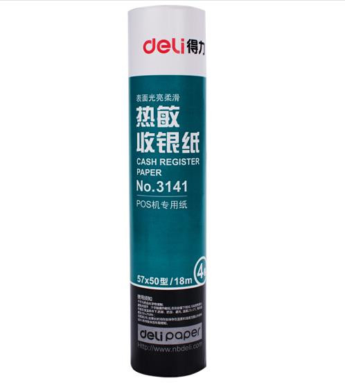得力(deli)57mm*50mm热敏收银纸/收银机打印纸/超市小票打印纸 18米/卷 100卷/箱 3141