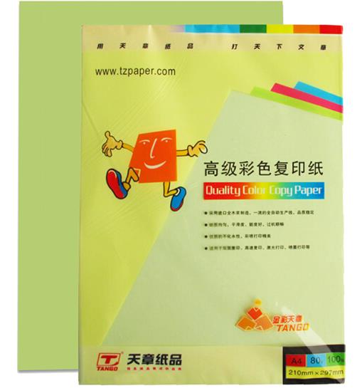 • 商品名称:天章 (TANGO) 金彩天章A4 浅绿色彩色复印纸 80g 100张/包 单包装